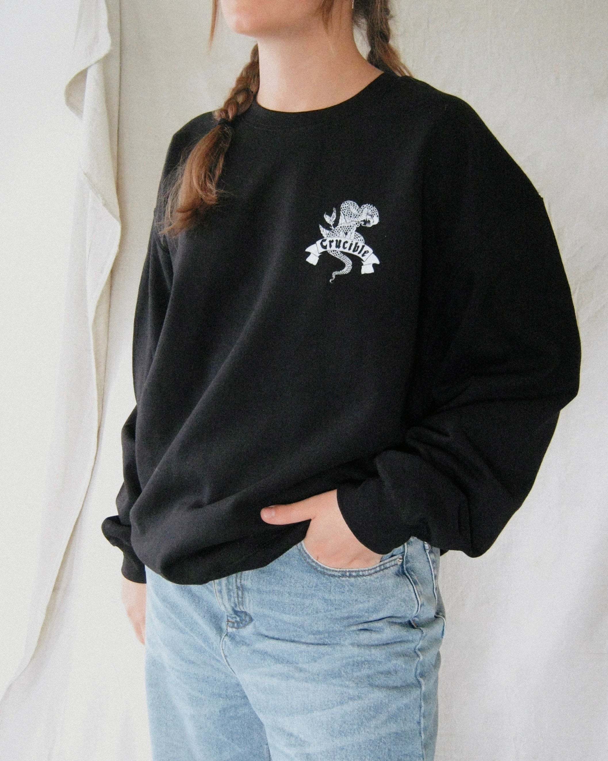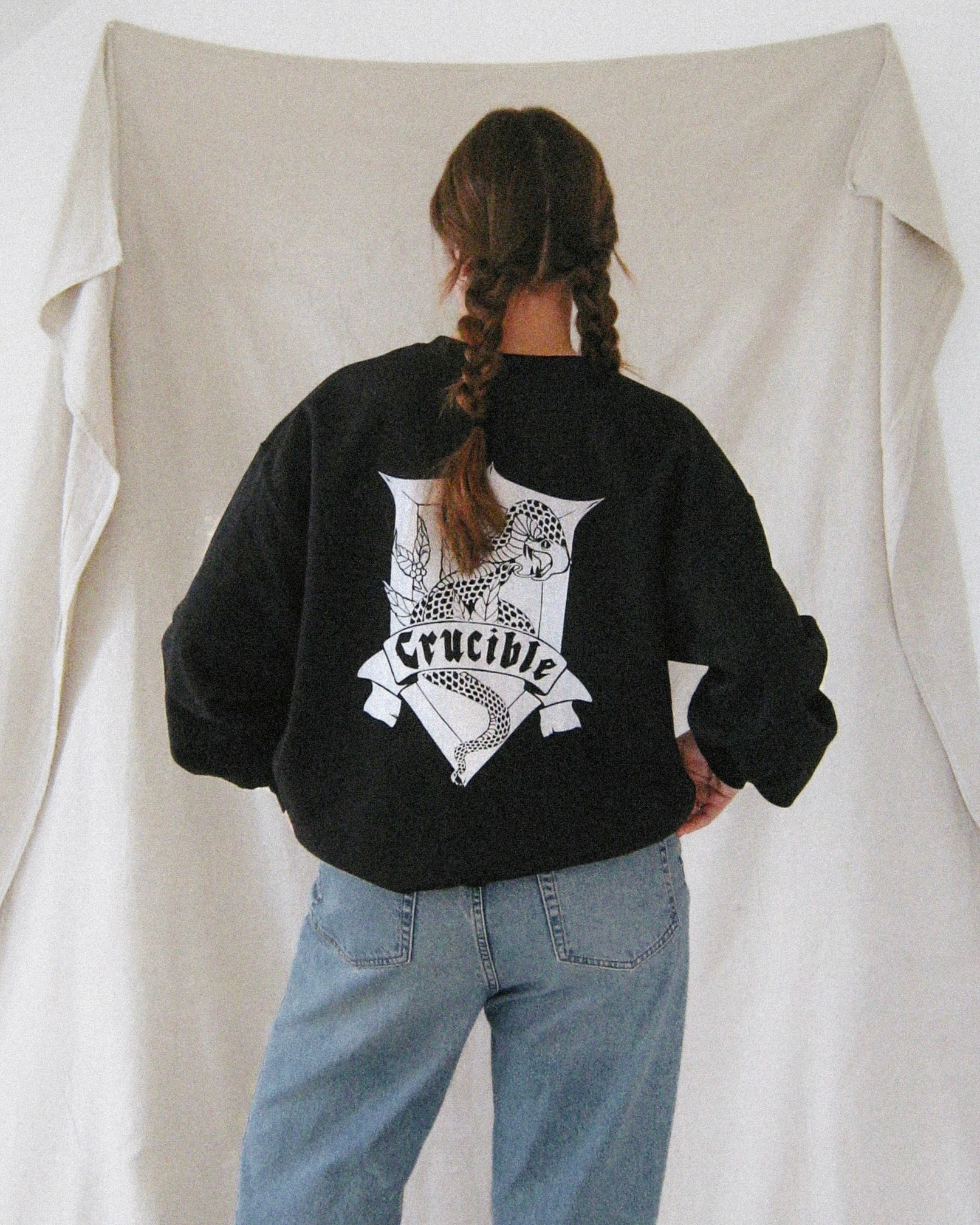 In celebration of local annual event Queen City Mischief & Magic, we present Haus of Crucible x sweetmxnster artistry series design crewneck