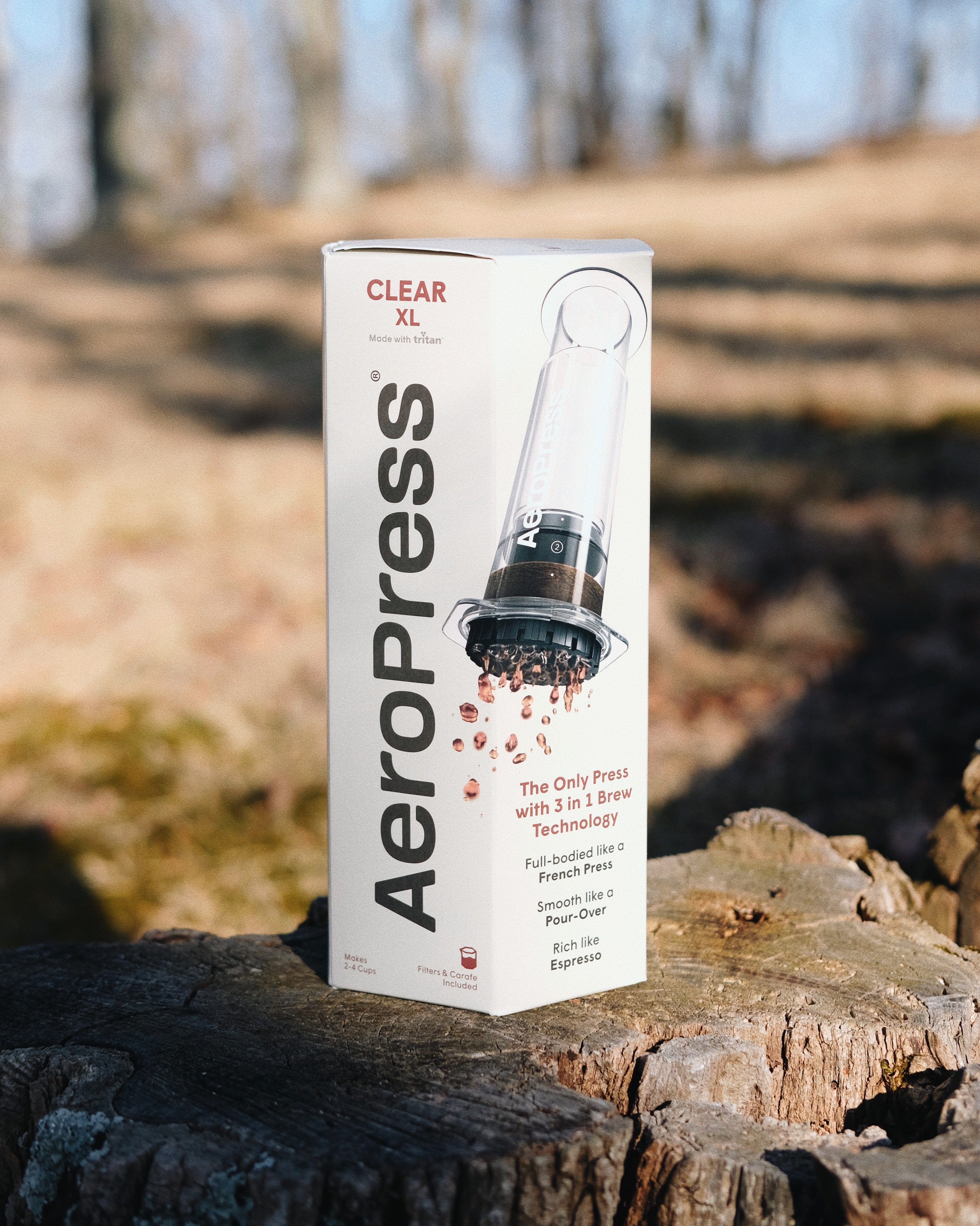 AeroPress extra large clear coffee press features 3 in 1 brew technology. Made from crystal-clear, shatterproof Tritan™ and can craft one generous cup or brew enough for two - all in about 2 minutes.