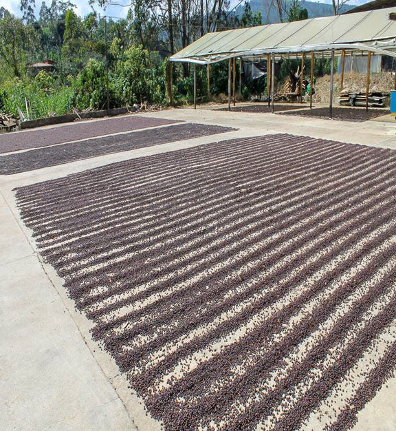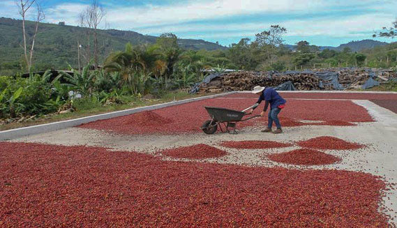 Tarrazú, Costa Rica accounts for 25% of the country's total coffee production. The coffee harvest season coincides with the region's dry season, lasting from November to March. Because of this the coffee is able to be sun-dried and has more uniformity.