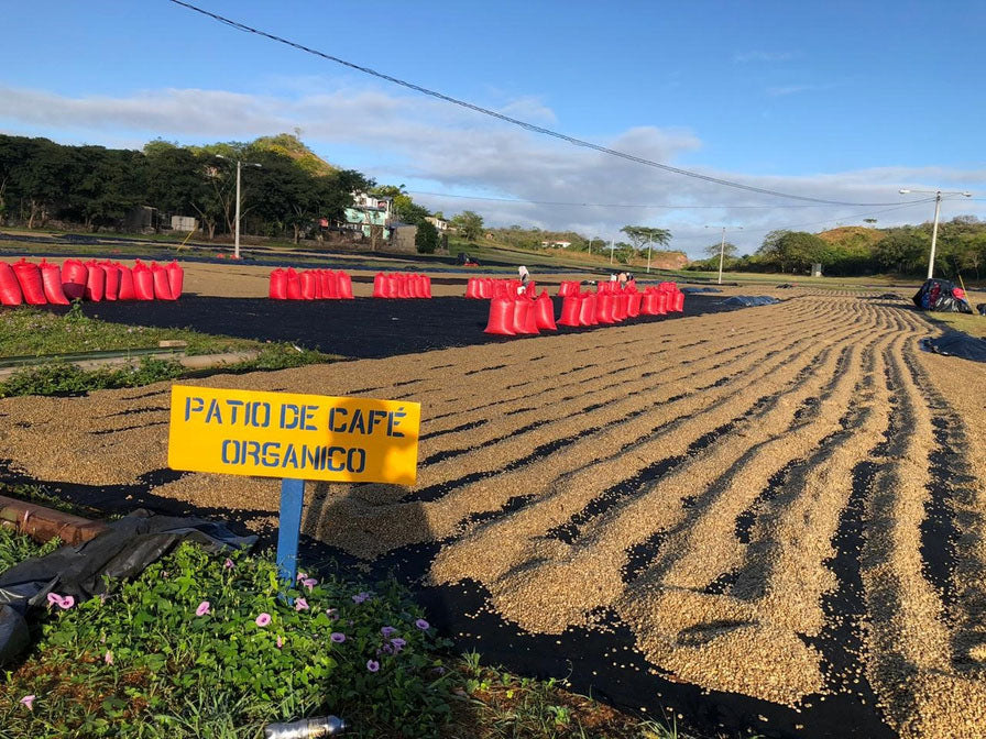 After the coffee is harvested at peak ripeness, each producer de-pulps and sun-dries the coffee at their own wet mill and then delivers to the cooperative's collection center. At the collection center the beans are transported to the dry mill where they undergo further natural sun-drying to reach moisture levels of 11% - 12%.
