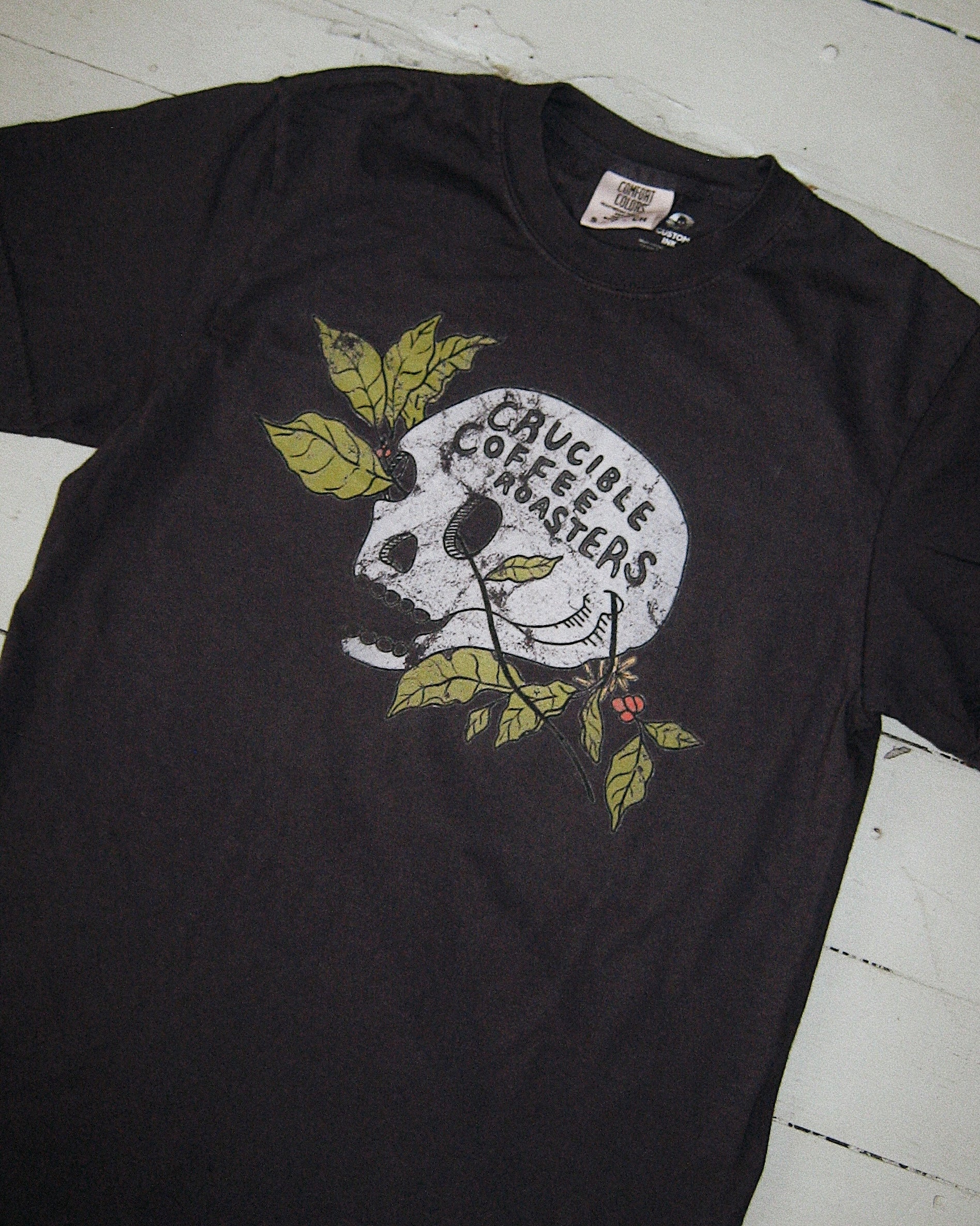 A dead design brought back to life - the faded CCR skull and coffee plant logo
